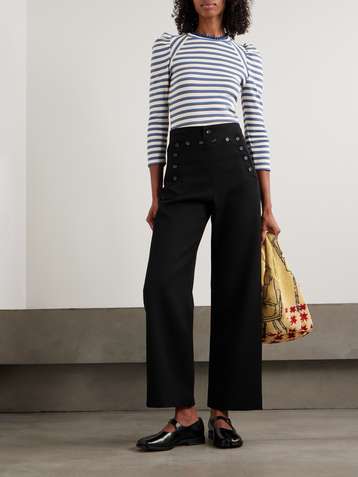 The first female designer to ever show at NYFW: Men’s, CFDA Award winner Emily Adams Bode Aujla is now making an impressive mark in womenswear. She often uses unique, vintage textiles sourced from around the world to create one-of-a-kind pieces that tell a story and elicit emotion. Don’t miss the beautifully detailed knitwear and jackets in our exclusive edit.