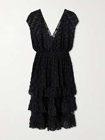 Ruffled polka-dot cotton-blend mesh midi dress
