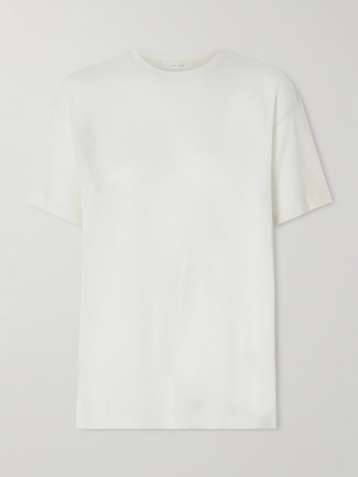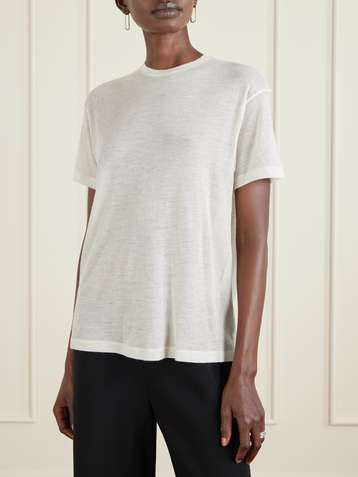 Refresh your wardrobe and treat yourself to something new from The Row's luxury range of t-shirts. Each design offers comfort and versatility, making it a breeze to pair with any outfit. This clothing is designed using materials such as organic cotton and linen, emphasizing luxurious textures and exceptional tailoring. Add more variety to your collection with fresh finds from this designer's bestselling shirts and bodysuits.