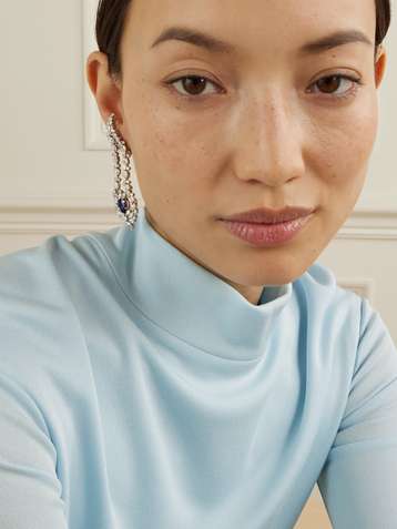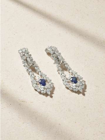 18-karat white gold, sapphire and diamond earrings