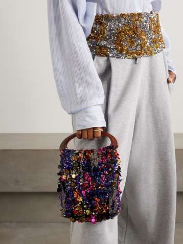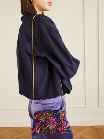 Sequin and bead-embellished satin clutch