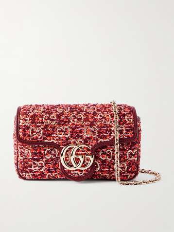 GG Marmont mini leather-trimmed bouclé-tweed shoulder bag
