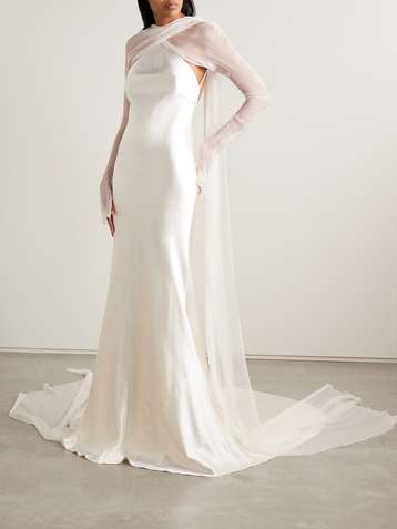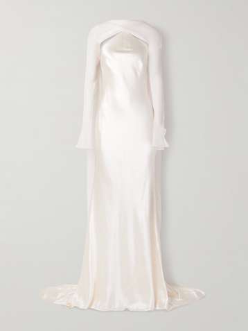 Mari convertible cape-effect silk and wool-blend satin and silk-crepon gown