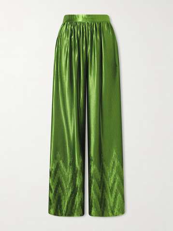 Letizia tasseled striped stretch-silk satin wide-leg pants