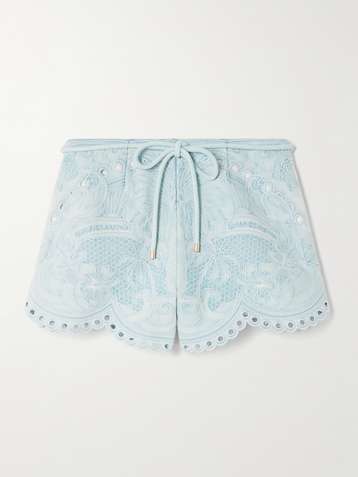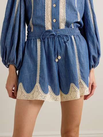 Crystal-embellished tulle-trimmed embroidered floral-print satin-jacquard shorts