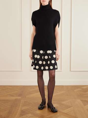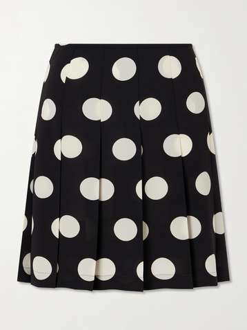 Pleated polka-dot georgette midi skirt