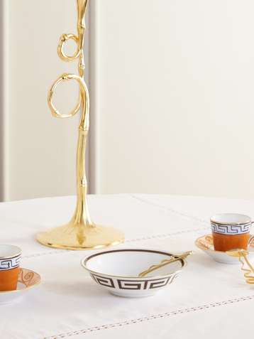 Oriente Italiano set of two gold-plated porcelain coffee cups, covers and saucers