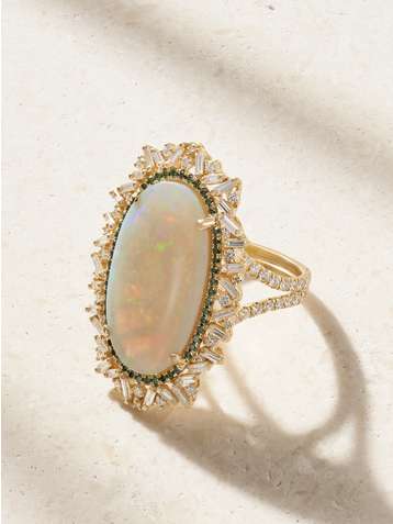 18-karat gold, opal and diamond ring