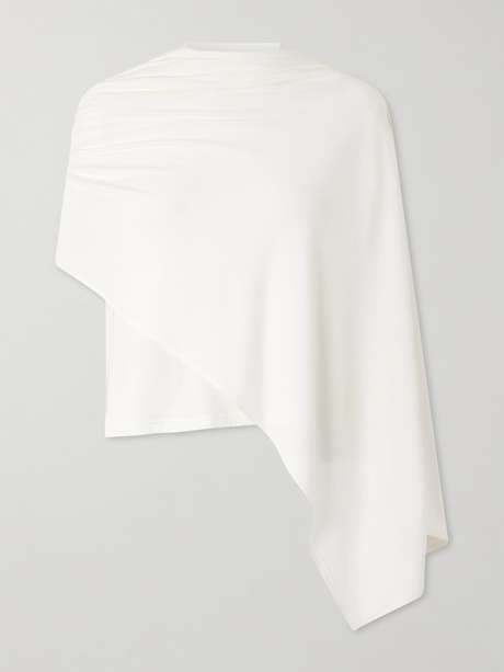 Magda Butrym's top has an elegant cape-effect panel that cascades to an asymmetric hem. It's made from stretch-jersey for a close fit and is loosely gathered along the neck. Wear yours with tailored pants.