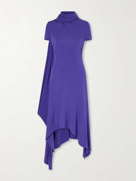 Paired with knee-high boots, Acne Studios' dress will feel effortlessly cool for evenings out. Cut from fluid jersey, it drapes from the high neckline to an asymmetric hem, while a trailing sash lends movement.