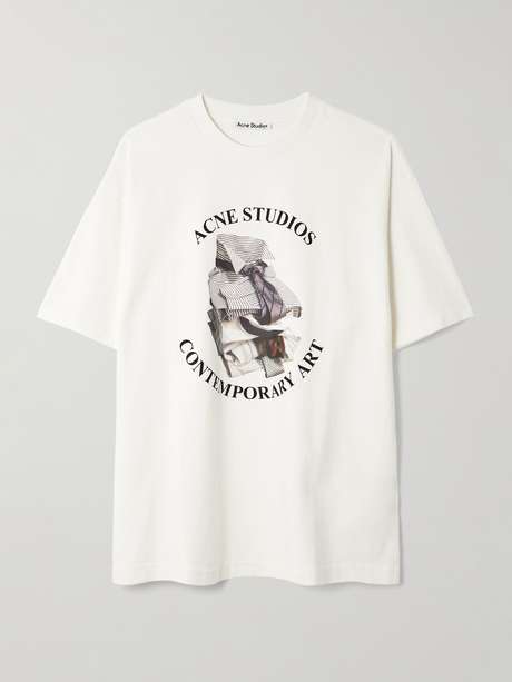 Acne Studios' T-shirt is inspired by vintage styles, made from open-ended yarns that create a slightly irregular texture to the fabric. It's cut from organic cotton-jersey, has a classic crew neckline and is printed with a playful graphic depicting a pile of shirts. The distressed edges give it a lived-in look.