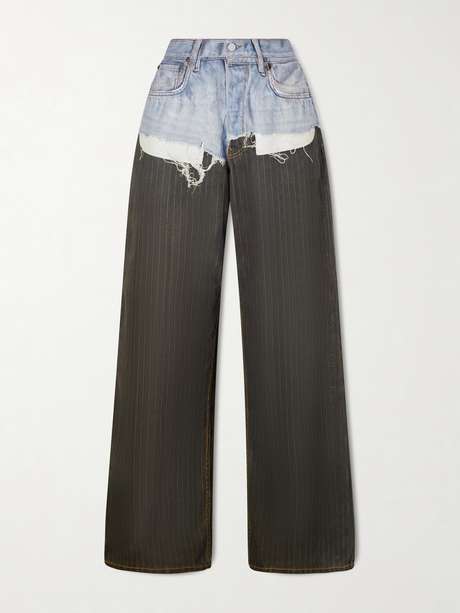 Acne Studios' jeans showcase the label's approach to proportion and illusion. Using the label's trompe l'oeil technique to hybridize casual and tailored styles, they have a frayed, cutoff denim top and wide, pinstriped legs. Lean into the contrast by styling them with a tee and sharp blazer.