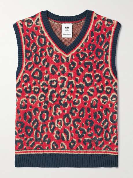 adidas Originals' vest is jacquard-knitted with colorful leopard spots. Part of the brand's collaboration with Wales Bonner, it's blended with generous amounts of wool and has ribbed trims.