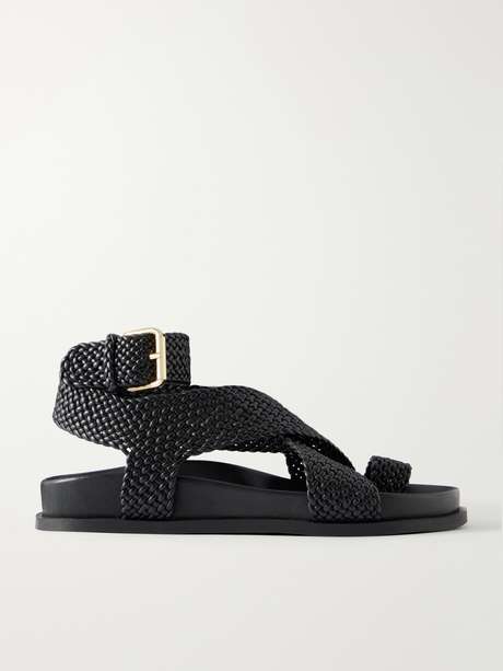 The minimalist design of A.EMERY's 'Jalen' sandals makes them the only shoes you need to pack in your vacation carry-on. They're woven from supple leather and have crossover straps with a gold-tone buckle.