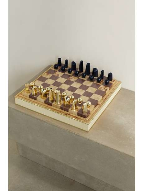 AERIN Brass, shagreen and wood chess set