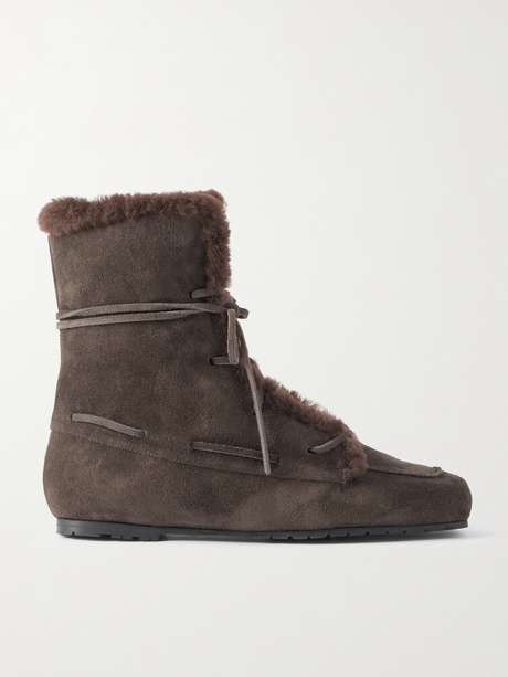 Aeyde's 'Paul' ankle boots take cues from traditional moccasins with a modern, winter-ready twist. They're made from smooth shearling with a fuzzy lining that spills out onto the cuffs and have visible stitching and long ties that wrap around the ankle.