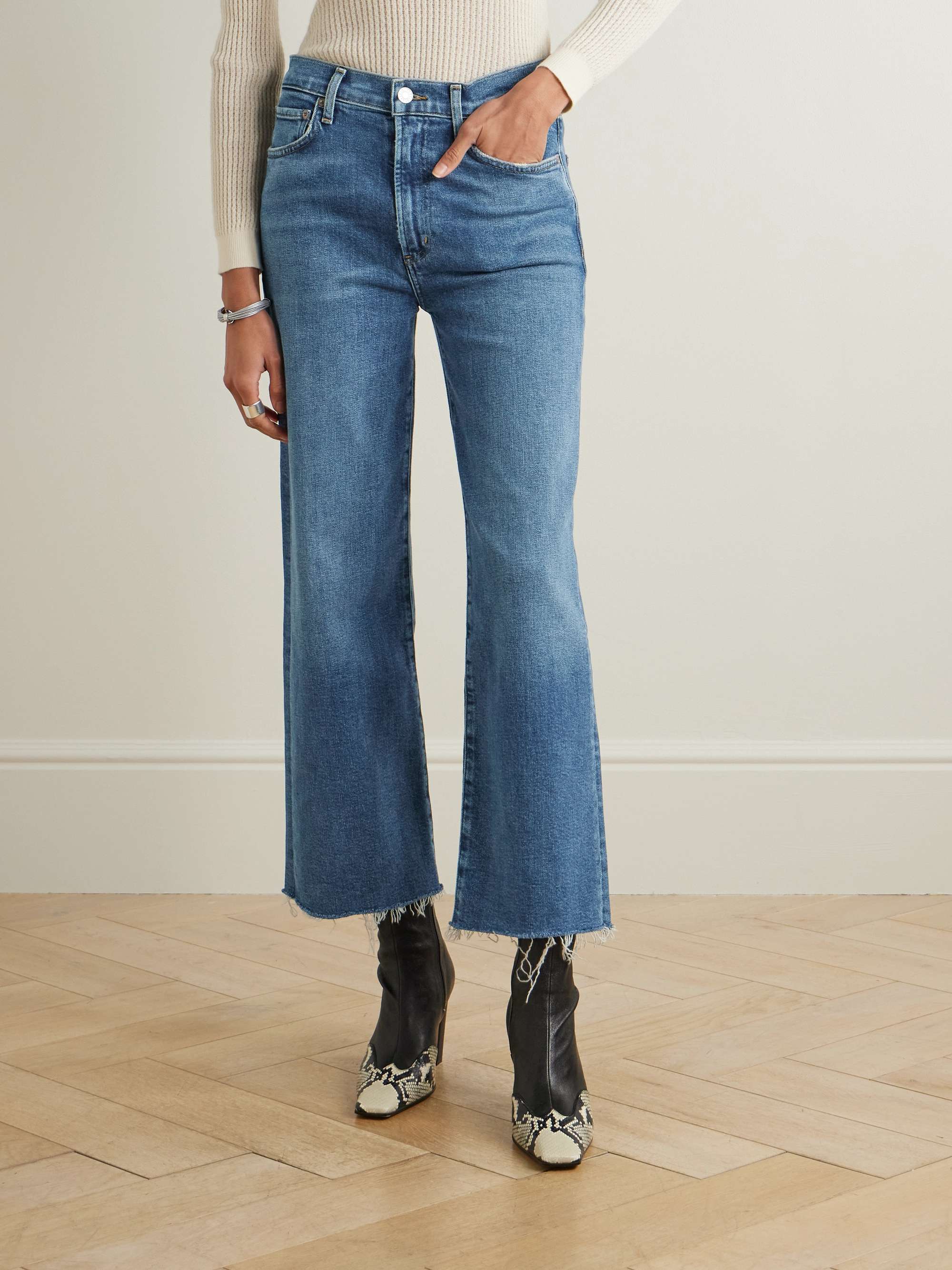 AGOLDE's cropped 'Harper' jeans are made from gently faded blue denim that's endlessly versatile. This mid-rise pair is designed with slightly cropped, frayed legs and has a classic five-pocket construction.