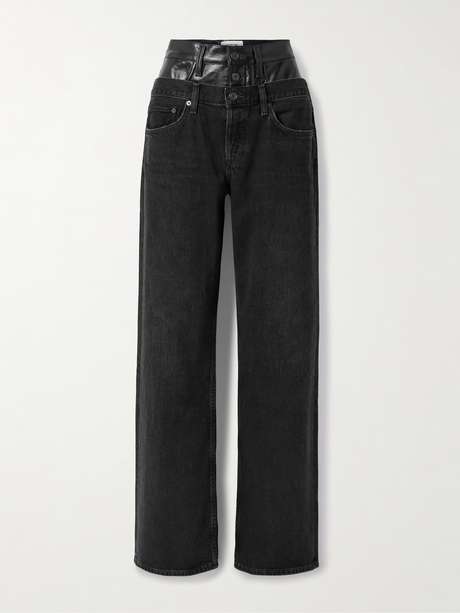 AGOLDE's 'Elson' jeans feature a clever layered waistband that creates the illusion of two pairs in one. Paneled with recycled leather-blend, they sit high on the waist and have straight legs.