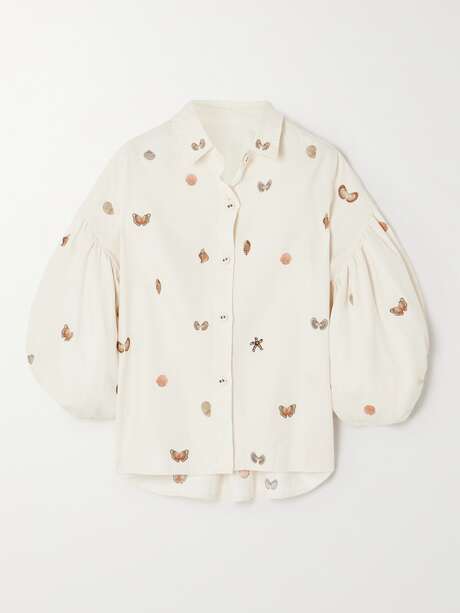 AGUA BY AGUA BENDITA + NET SUSTAIN Agar Caracola embroidered linen shirt