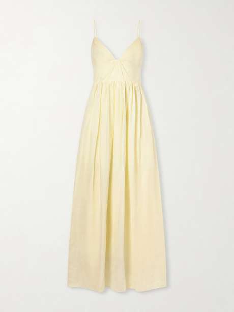 The lemon-yellow tone on Aje’s ‘Vacation’ dress is so endearing. Made from breathable ramie, it is adorned with subtle gathering around the V-neckline and a zipped closure at the back. Wear yours with strappy heels or wedge sandals.