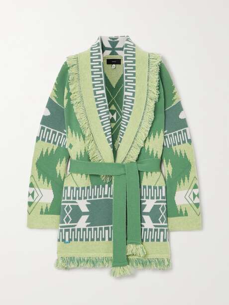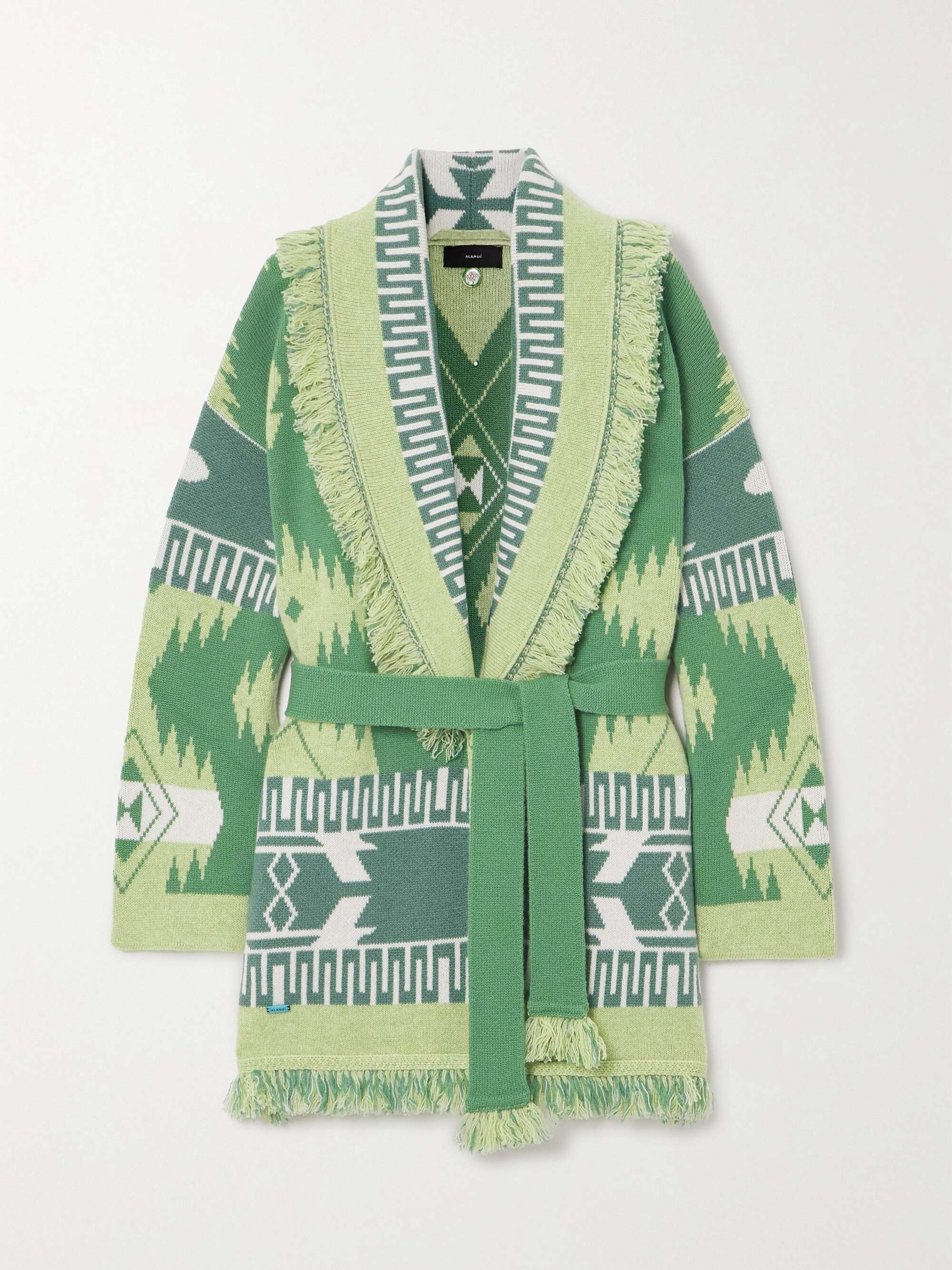 ALANUI Icon belted fringed jacquard-knit cashmere cardigan