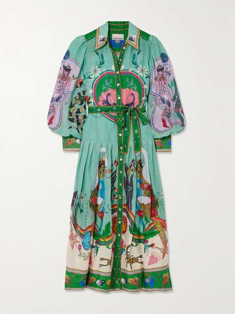 ALÉMAIS + Meagan Boyd Evergreen belted printed ramie maxi shirt dress