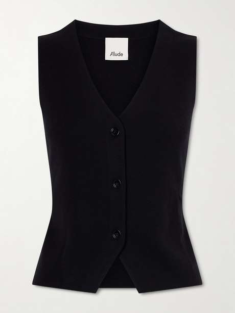Allude's vest combines the softness of knitwear with the refinement of tailoring. Made from wool, it has a slim fit with a notched hem and fastens with a trio of horn buttons. Wear it with tonal jeans or pants.