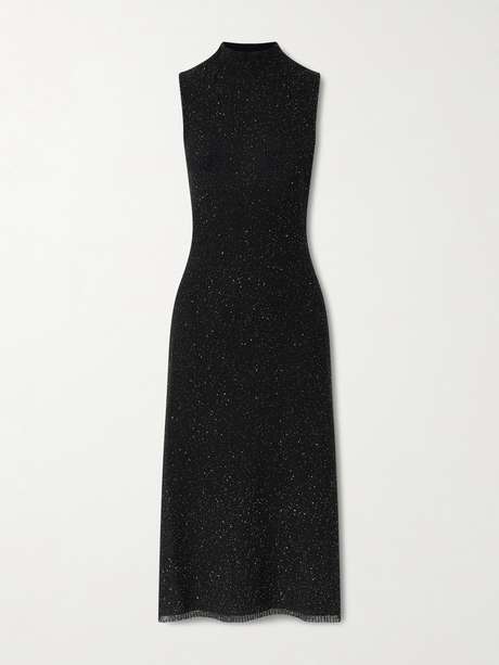 Altuzarra's 'Marian' dress is flecked with metallic threads that sparkle as they catch the light. Knitted with a generous amount of wool, it has a chic high neckline and gently skims your figure as it falls. Match your lipstick to the timeless black hue.