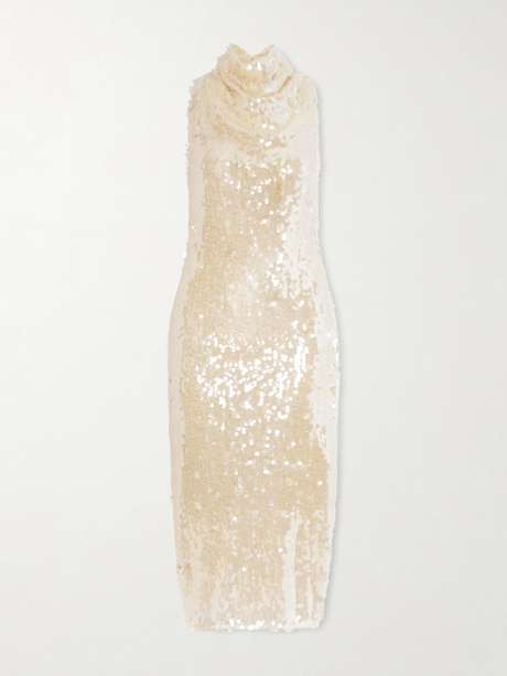 Altuzarra's 'Noor' dress is beautifully covered with scores of light-catching sequins for an ethereal finish. Made from lustrous chiffon, it features a draped halter neckline that accents the fluid shape. The midi hem leaves plenty of room for the label’s signature pumps.