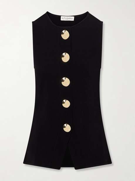 Altuzarra's 'Harper' top is finely knitted for a close fit. Designed with a sleeveless silhouette, it's punctuated by oversized gold-tone buttons and subtly flares at the hem for a softly structured finish.
