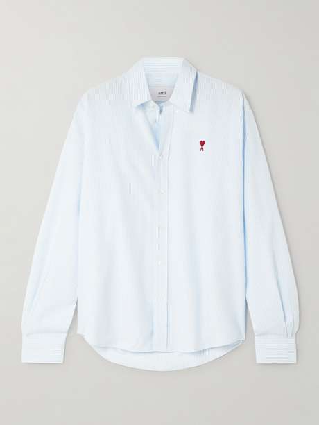 AMI PARIS' shirt is embroidered with the label’s 'Ami de Cœur' emblem, giving this staple an elevated feel. Woven from striped cotton Oxford for a loose fit, it has a sharp collar and curved hem.