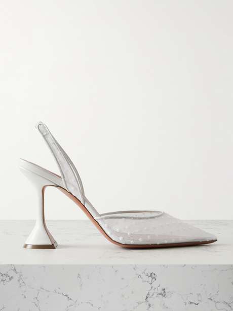 Amina Muaddi's shoes are a regular fixture on the red carpet, so these 'Holli' slingback pumps will make a great choice for your next big event. Made from flocked polka-dot mesh and leather, they have sharp pointed toes and rest on the designer’s signature fluted heels.