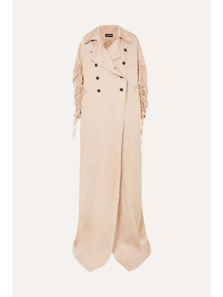 ANN DEMEULEMEESTER Oversized ruched double-breasted crepe de chine coat