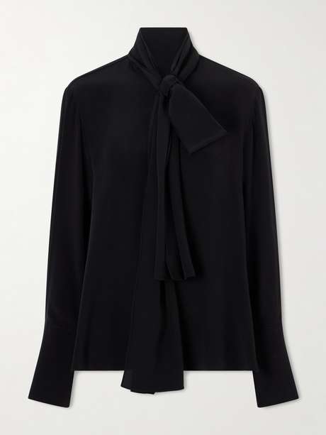 ANOTHER TOMORROW Pussy-bow silk crepe de chine blouse