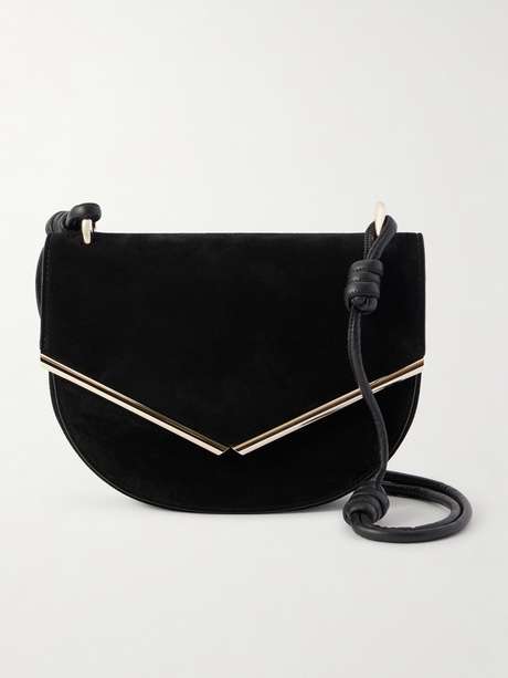 AQUAZZURA Galerie leather-trimmed suede shoulder bag