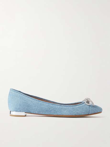 AQUAZZURA Parisina crystal-embellished denim ballet flats