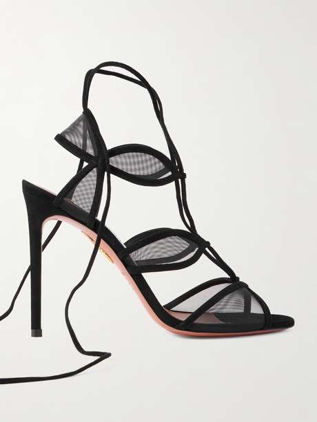AQUAZZURA Fatal Attraction 105 suede-trimmed mesh sandals
