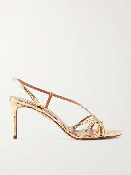 AQUAZZURA Talk to Me 75 metallic snake-effect leather slingback sandals