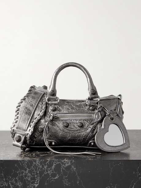 • BALENCIAGA Neo Cagole XS studded metallic crinkled-leather tote