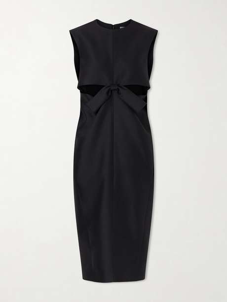 Debuted in Pierpaolo Piccioli's inaugural runway collection for Balenciaga, this midi dress revives the label's heritage with structure and elegance. It's crafted from a lustrous wool and silk-blend in a cocoon silhouette with cutouts and a bow at the waist. Wear yours with sleek pumps and statement jewelry.