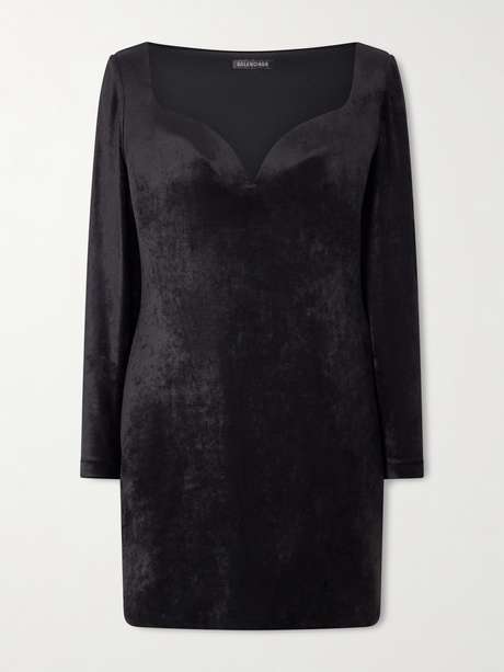 Balenciaga's mini dress encompasses the dark glamour of Pierpaolo Piccioli's debut collection. It's made from black stretch-velvet and cut to skim your figure. Complement the sweetheart neckline with a lariat necklace or pendant.