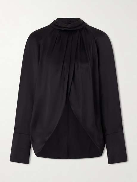 Balmain's blouse brings understated, contemporary elegance to your evening wardrobe. Cut from glossy silk-satin that drapes fluidly over the body, it has a high neck and a crossover front that opens to reveal a hint of midriff. Style yours with tailored separates or denim for a look that’s effortlessly elevated.