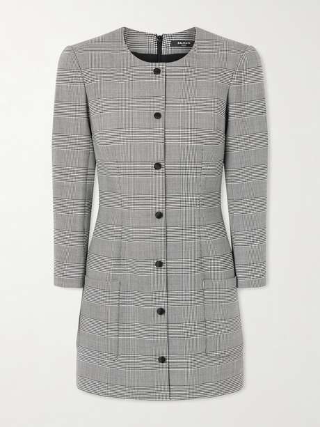 Balmain's mini dress has an elegant, tailored shape. It's made from wool that's patterned with classic Prince of Wales check and is darted through the middle to draw in the waist. Wear yours with point-toe pumps.