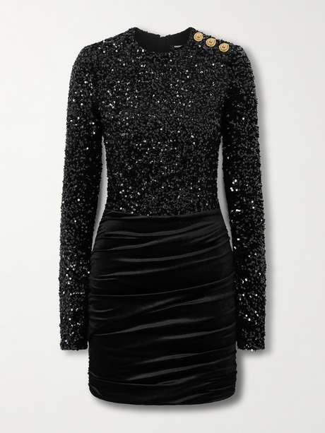 Balmain's dress brings the glamour and drama to your next event. Made from plush velvet, it's saturated in light-catching sequins along the top and has a ruched skirt that hugs your figure. Don't miss the signature gold-tone buttons at the shoulder.