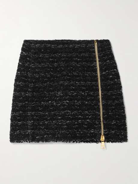 Balmain's skirt has been tailored in France from bouclé-tweed. Giving an edge to its preppy mood, it fastens with a chunky zip through the front, which also lets you adjust the slit.