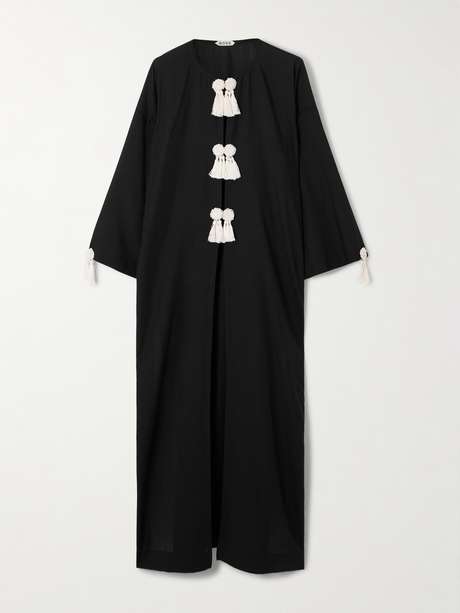 BODE's maxi dress is so effortless, yet makes such a statement. It's made from black wool that's cut in a loose, flowing shape with contrasting tassels that sway as you move. Style yours with flats or add a little height with heels.