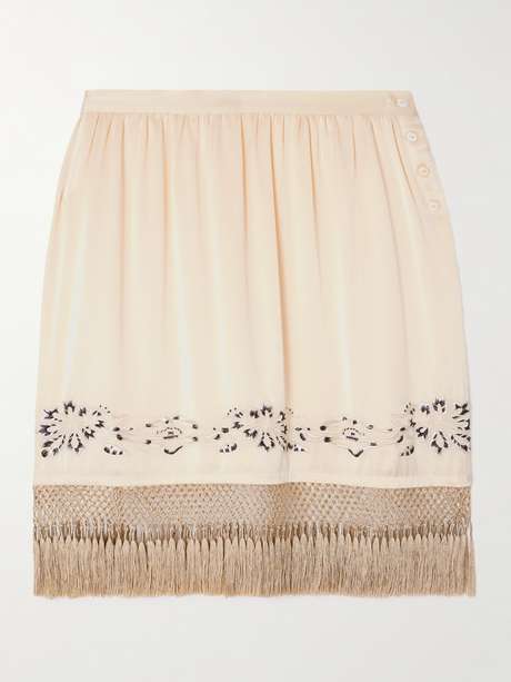 BODE Phantasm fringed embroidered silk-satin mini skirt