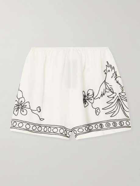 BODE's shorts have been hand-beaded with a cockatoo, blossom, and artful trims. Tailored from cotton and silk-blend, they feel gorgeously smooth.