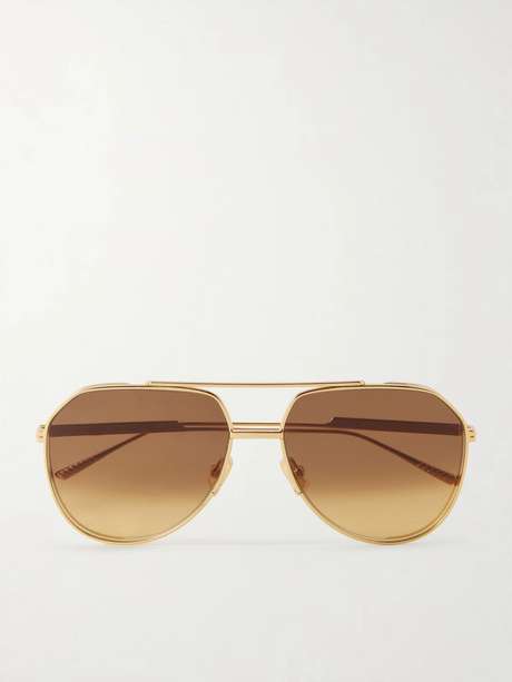 This aviator from Bottega Veneta Eyewear is rendered entirely in gold-tone metal for a pared-back effect. The fine framework outlines the face with clarity, offering a timeless silhouette with modern restraint.