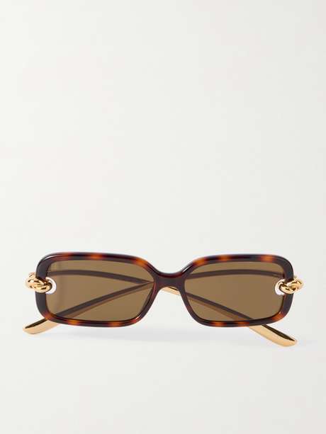 BOTTEGA VENETA EYEWEAR Knot rectangle-frame tortoiseshell acetate and gold-tone sunglasses